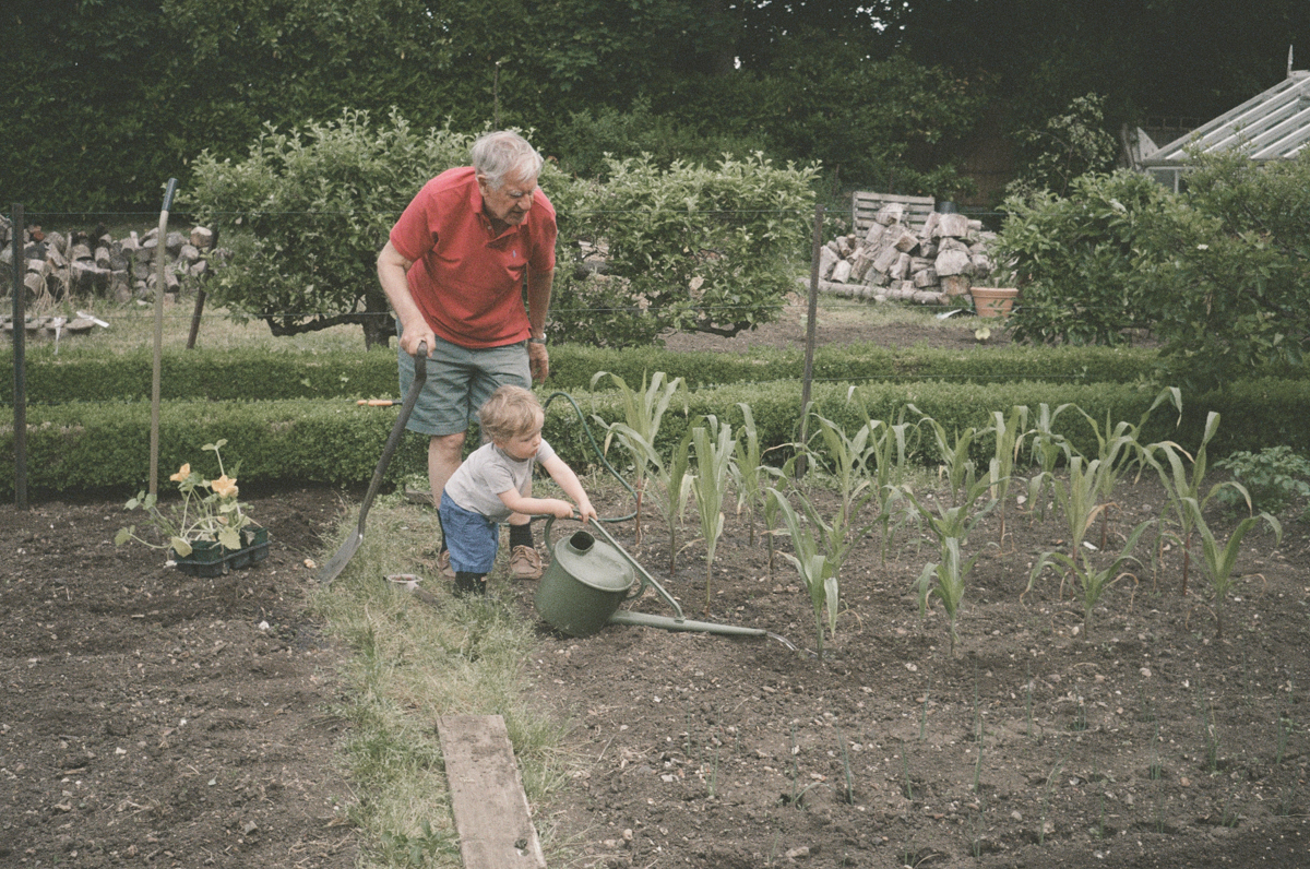 Helping Grandpa In The Garden